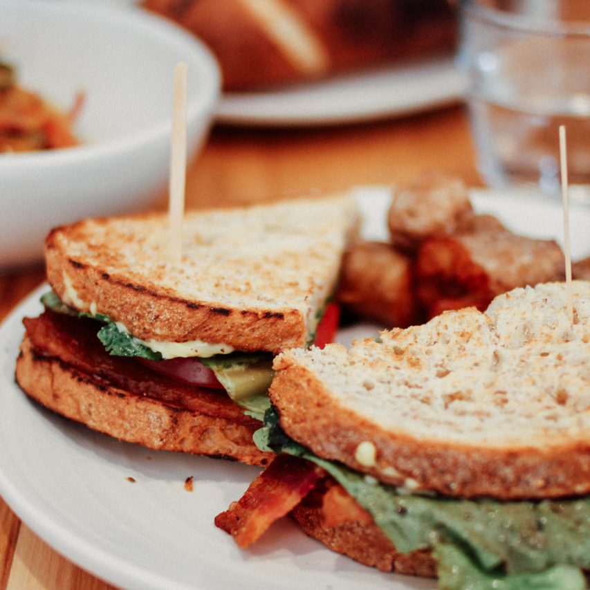 Sponge-like pancake with crispy bacons